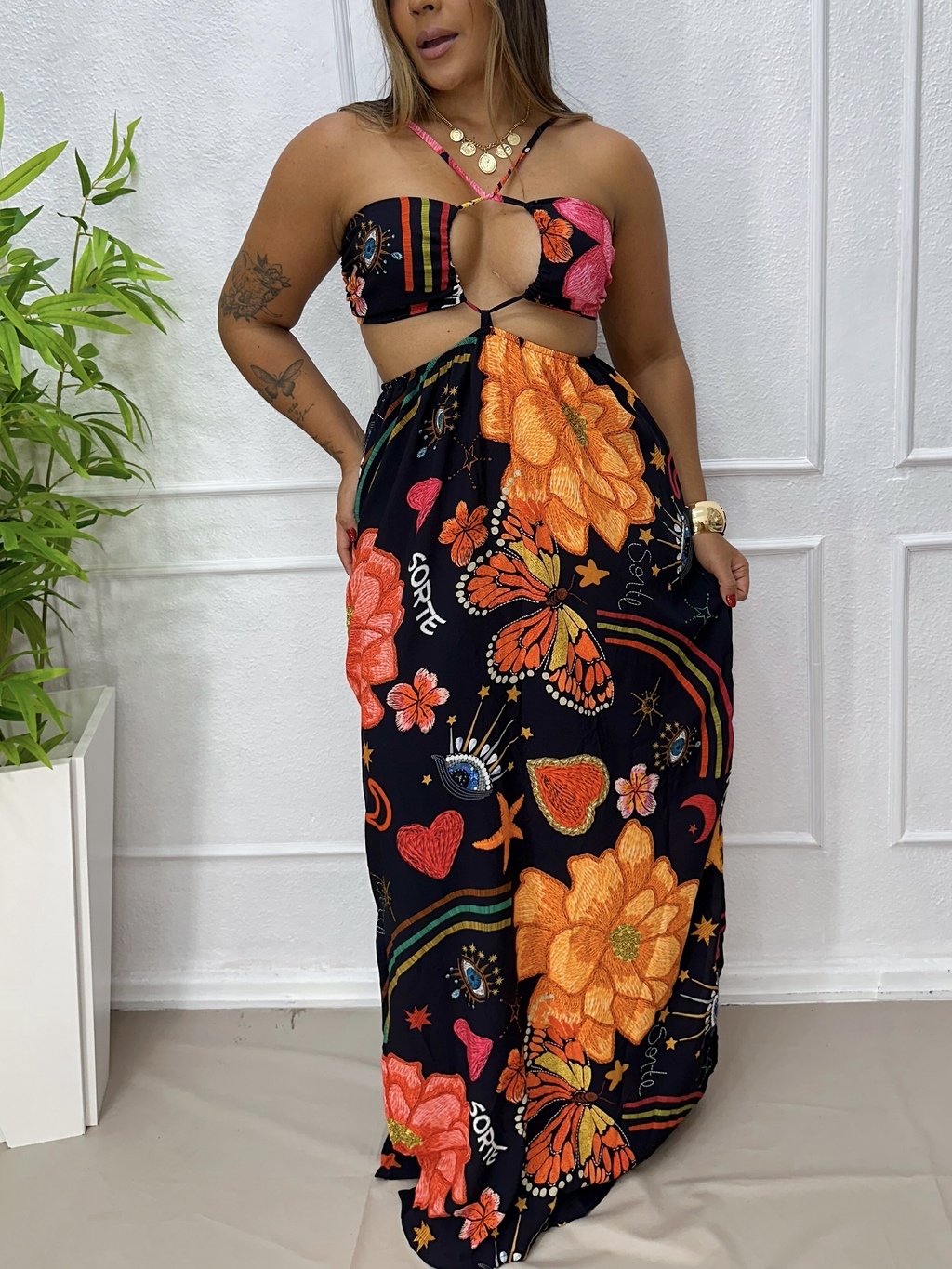 O longo perfeito pra quem ama uma peça que se transforma em muitos looks! Busto duplo, podendo fazer várias amarrações no peito, garantindo segurança e conforto. O vestido Laura possui elastico fino nas cinturas que realça a silhueta de forma delicada, podendo regular deixando mais pra cima ou mais pra baixo o recorte do vestido. As costas nua trazendo um toque de sensualidade e frescor para os dias mais quentes. Esse modelo pode ser usado como saia também, separando o top da saia. Ideal para um café e passeio ao ar livre. Voce vai amar essa estampa de pertinho.